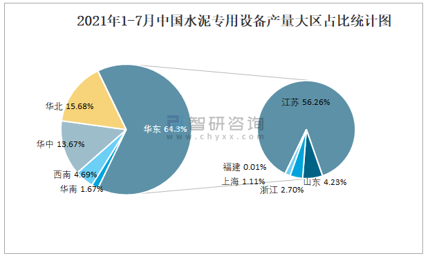 2021年1-7月中國(guó)水泥專(zhuān)用設(shè)備產(chǎn)量大區(qū)占比統(tǒng)計(jì)圖