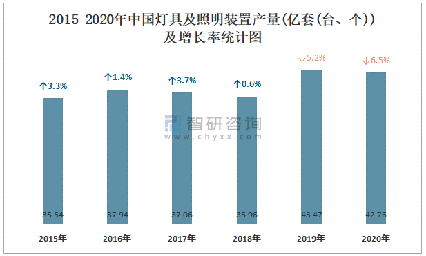 2015-2020年中國燈具及照明裝置產量及增長率統計圖