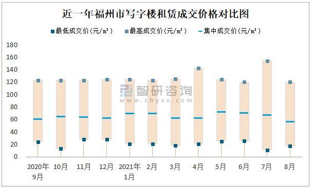 近一年福州市寫字樓租賃成交價格對比圖