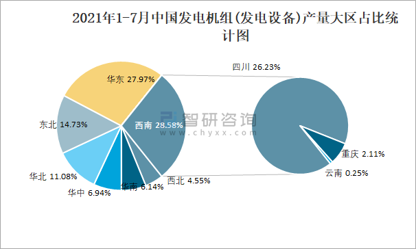 2021年1-7月中國發(fā)電機組(發(fā)電設備)產(chǎn)量大區(qū)占比統(tǒng)計圖