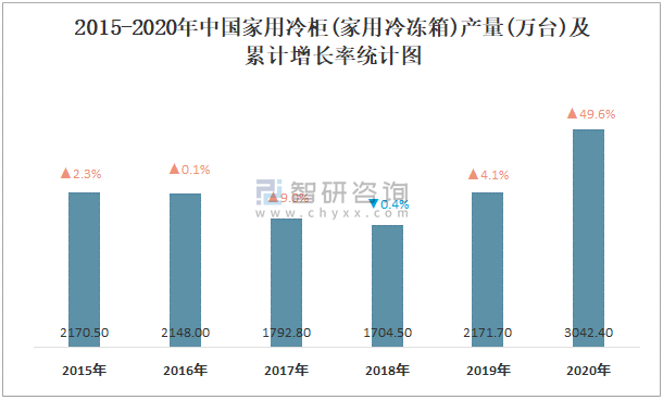 2015-2020年中國家用冷柜(家用冷凍箱)產量及增長率統計圖