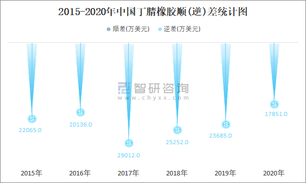2015-2020年中國丁腈橡膠順(逆)差統(tǒng)計圖