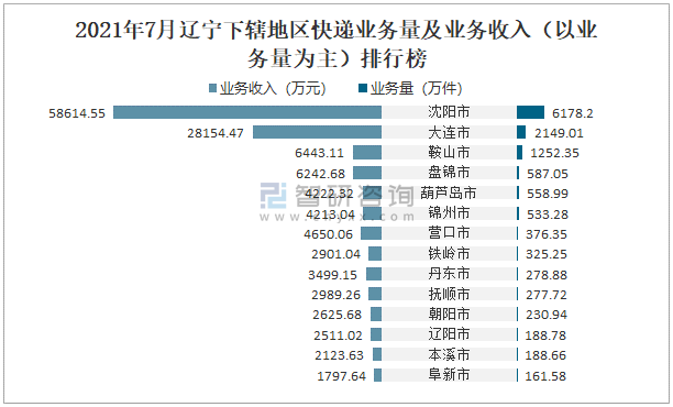 2021年7月遼寧下轄地區(qū)快遞業(yè)務(wù)量及業(yè)務(wù)收入(以業(yè)務(wù)量為主)排行榜