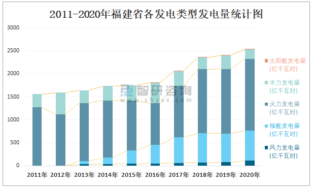 根據國家統計局數據統計可知:2021年8月福建省發電量為270.9億千瓦時,同比增長0.2%,2021年1-8月福建省發電量為1884.4億千瓦時,累計增長14.6%;2021年1-8月福建省主要有5種類型發電量,發電量占全國比重約為3.5%,其中火力發電量為1141.2億千瓦時,占福建省發電量比重約為60.56%,占全國發電量比重約為2.12%,是福建省最大發電量類型。