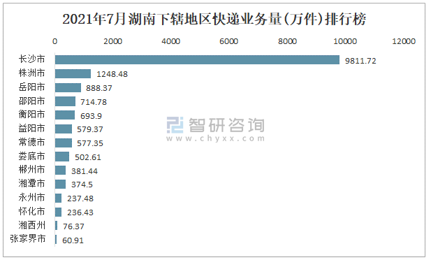 2021年7月湖南下轄地區(qū)快遞業(yè)務(wù)量排行榜