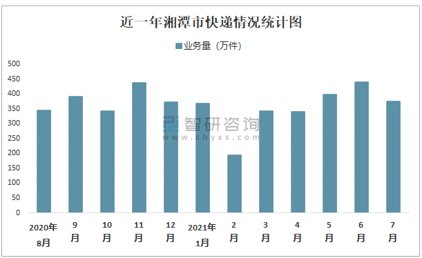 2021年7月湘潭市快遞業(yè)務(wù)量374.5萬(wàn)件