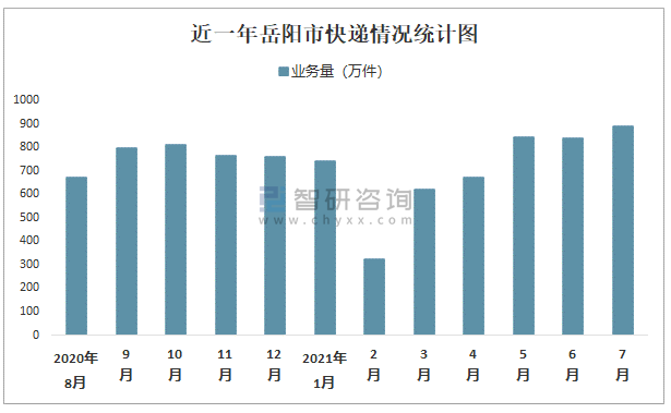 近一年岳陽市快遞情況統(tǒng)計(jì)圖