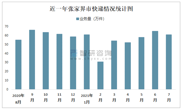 近一年張家界市快遞情況統計圖