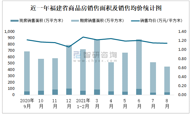 2021年8月福建省銷售商品房447.2萬平方米 銷售均價約為1.14萬元/平方米