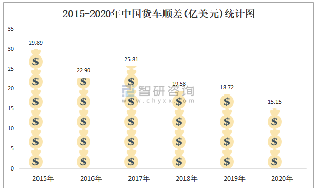 2015-2020年中國(guó)貨車順差(億美元)統(tǒng)計(jì)圖