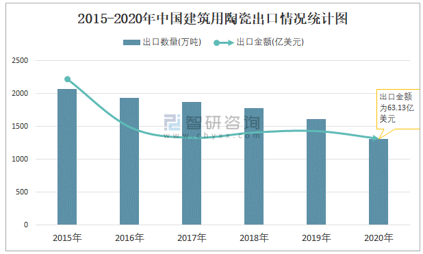 2015-2020年中國建筑用陶瓷出口情況統(tǒng)計圖