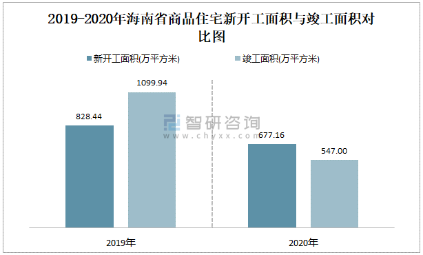 2019-2020年海南省商品住宅新開工面積與竣工面積對比圖