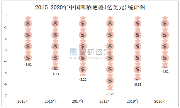 2015-2020年中國(guó)啤酒逆差(億美元)統(tǒng)計(jì)圖