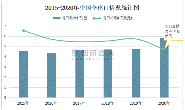 2015-2020年中國傘出口情況統(tǒng)計(jì)圖