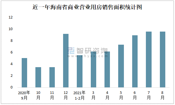 近一年海南省商業營業用房銷售面積統計圖