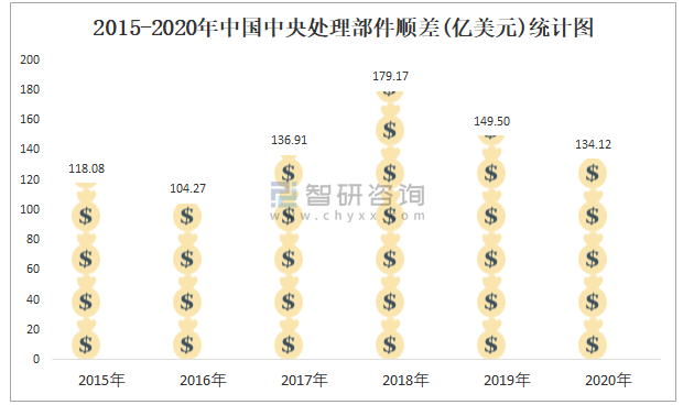 2015-2020年中國中央處理部件順差(億美元)統(tǒng)計圖