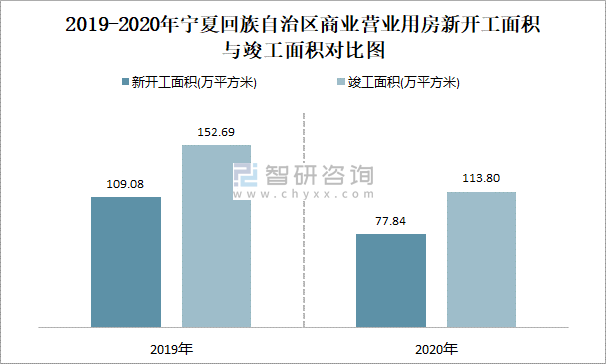 2019-2020年寧夏回族自治區商業營業用房新開工面積與竣工面積對比圖