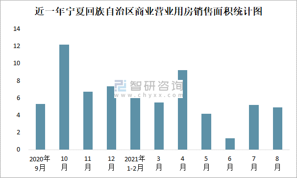 近一年寧夏回族自治區商業營業用房銷售面積統計圖