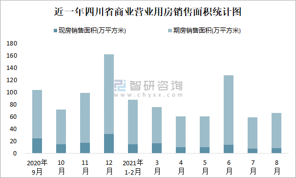 根據國家統計局數據可知:2021年8月四川省商業營業用房銷售面積為66.35萬平方米(其中銷售現房8.53萬平方米,期房57.82萬平方米);2021年1-8月四川省商業營業用房累計銷售面積為538.12萬平方米;近一年四川省商業營業用房期房銷售面積遠高于現房銷售面積。