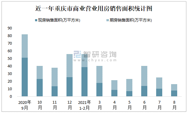 根據(jù)國家統(tǒng)計局數(shù)據(jù)可知:2021年8月重慶市商業(yè)營業(yè)用房銷售面積為16.32萬平方米(其中銷售現(xiàn)房7.81萬平方米,期房8.51萬平方米);2021年1-8月重慶市商業(yè)營業(yè)用房累計銷售面積為221.9萬平方米;近一年重慶市商業(yè)營業(yè)用房期房銷售面積遠高于現(xiàn)房銷售面積。