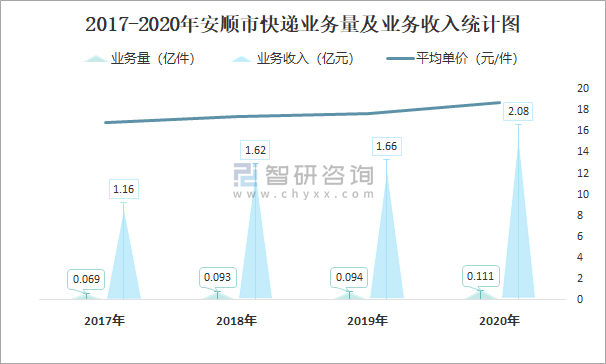 2017-2020年安順市快遞業(yè)務(wù)量及業(yè)務(wù)收入統(tǒng)計(jì)圖