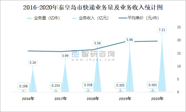2016-2020年秦皇島市快遞業(yè)務(wù)量及業(yè)務(wù)收入統(tǒng)計圖