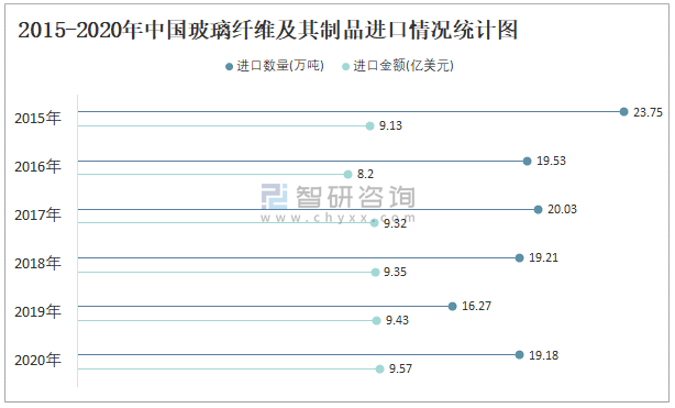 2015-2020年中國玻璃纖維及其制品進口情況統計圖