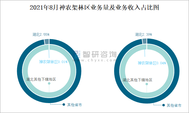2021年8月神農架林區業務量及業務收入占比圖
