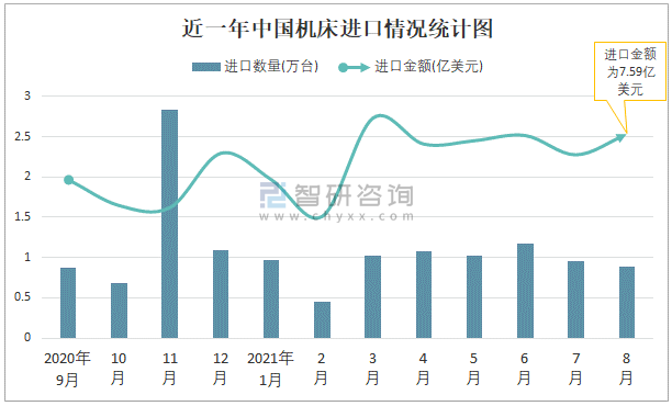 近一年中國機床進口情況統(tǒng)計圖