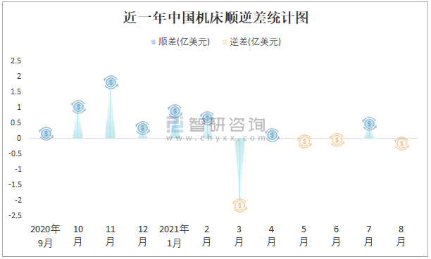 近一年中國機床順逆差統(tǒng)計圖