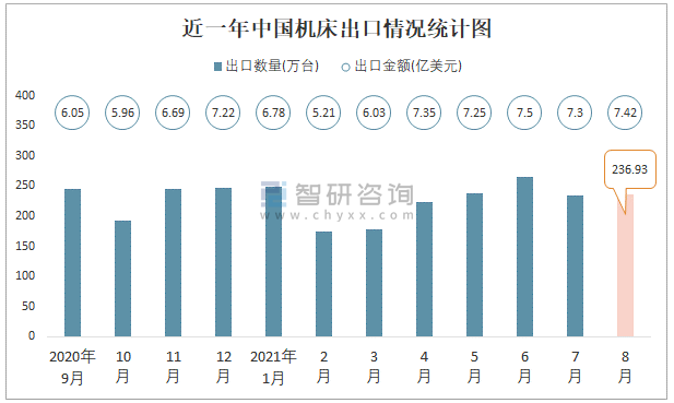 近一年中國機床出口情況統(tǒng)計圖