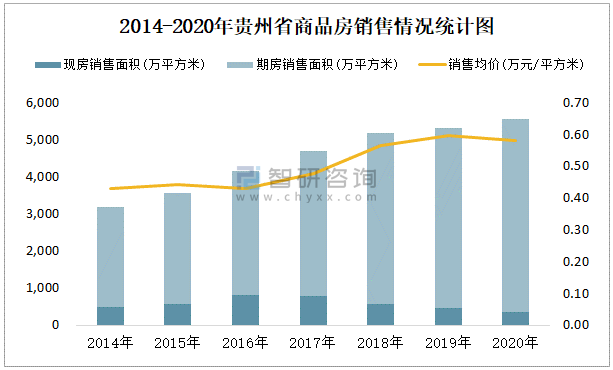 2014-2020年貴州省商品房銷售情況統(tǒng)計圖