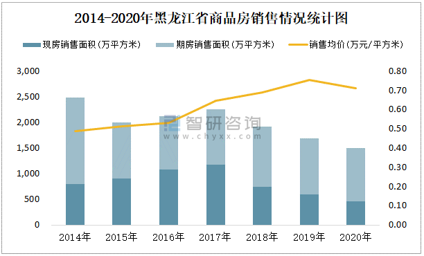 2014-2020年黑龍江省商品房銷售情況統計圖