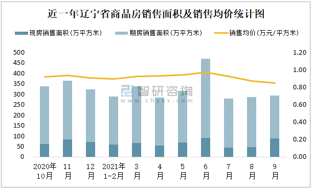根據(jù)國家統(tǒng)計(jì)局?jǐn)?shù)據(jù)統(tǒng)計(jì)可知:2021年9月遼寧省商品房銷售面積為292.85萬平方米(其中銷售現(xiàn)房89.69萬平方米,期房203.16萬平方米),銷售額為248.46億元,銷售均價(jià)約為0.85萬元/平方米;2021年1-9月遼寧省商品房累計(jì)銷售面積為2554.78萬平方米,銷售面積累計(jì)同比下降5.9%,累計(jì)銷售額為2349.82億元,銷售額累計(jì)同比下降2.8%;2014-2020年遼寧省商品房總銷售面積2019年跌至最低值,此后總體呈現(xiàn)上升趨勢,其中期房銷售面積大大高于現(xiàn)房銷售面積,銷售均價(jià)逐年遞增。
