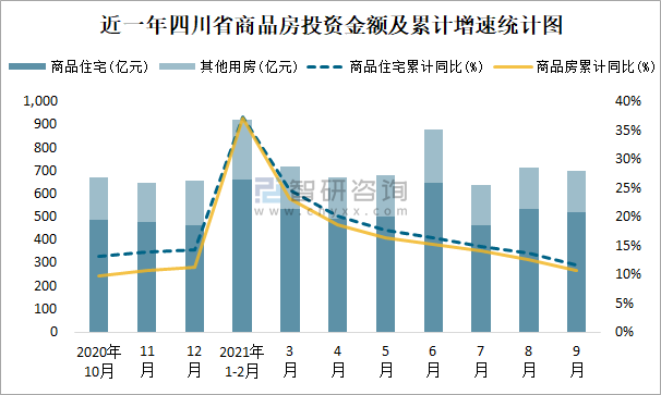 根據(jù)國家統(tǒng)計(jì)局?jǐn)?shù)據(jù)統(tǒng)計(jì)可知:2021年9月四川省房地產(chǎn)開發(fā)投資商品房投資金額為699.09億元(其中商品住宅為520.68億元,辦公樓、商業(yè)營業(yè)用房等其他用房178.41億元);2021年1-9月四川省房地產(chǎn)開發(fā)投資商品房累計(jì)投資金額為5920.13億元,投資金額累計(jì)同比增長10.8%。