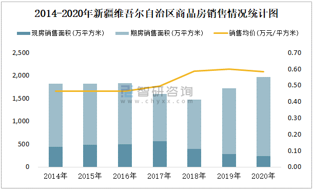 2014-2020年新疆維吾爾自治區商品房銷售情況統計圖