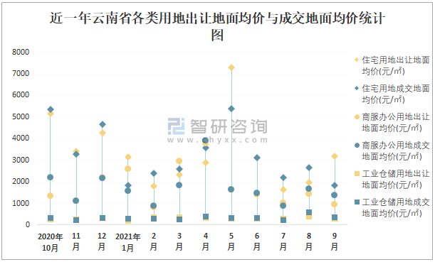 2021年1-9月云南省各類用地土地成交情況統(tǒng)計(jì)表