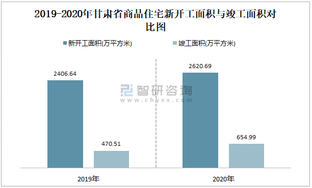 2019-2020年甘肅省商品住宅新開工面積與竣工面積對比圖