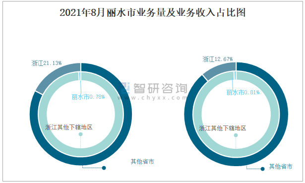 2021年8月麗水市業務量及業務收入占比圖
