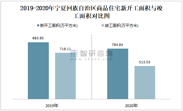 2019-2020年寧夏回族自治區商品住宅新開工面積與竣工面積對比圖