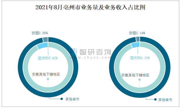 2021年8月亳州市業務量及業務收入占比圖