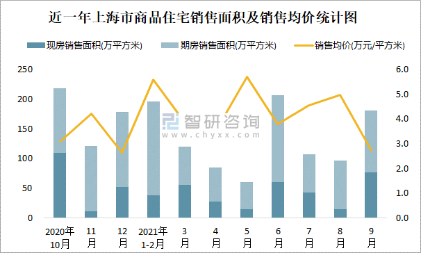 2021年9月上海市銷售商品住宅180.68萬平方米 銷售均價約為2.73萬元/平方米