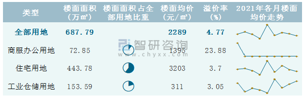 根據(jù)國信房地產(chǎn)信息網(wǎng)數(shù)據(jù)統(tǒng)計(jì)可知:2021年9月哈爾濱市全部用地出讓地面均價(jià)為4720元/㎡,其中住宅用地出讓地面均價(jià)最高(6194元/㎡),全部用地成交地面均價(jià)為1718元/㎡,其中住宅用地成交地面均價(jià)為3130元/㎡,高于商服辦公用地成交地面均價(jià);2021年1-9月哈爾濱市住宅用地樓面面積占其全部用地比重最多,為64.52%,溢價(jià)率為3.7%。