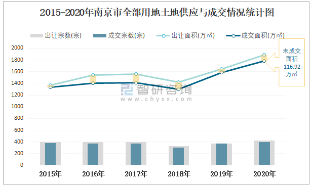 2015-2020年南京市全部用地土地供應(yīng)與成交情況統(tǒng)計(jì)圖