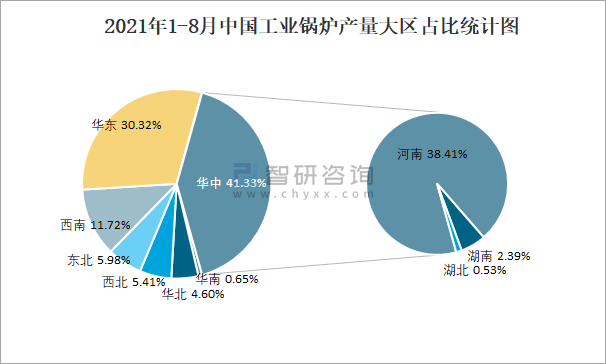 2021年1-8月中國工業鍋爐產量大區占比統計圖