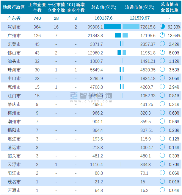 2021年10月廣東省新增3家A股上市企業(yè),740家企業(yè)總市值共計(jì)160137.6億元