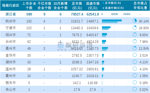 2021年10月浙江省新增6家A股上市企業(yè),589家企業(yè)總市值共計(jì)79527.37億元