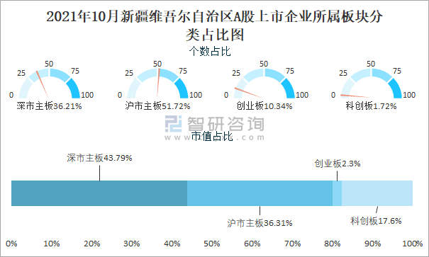 2021年10月新疆維吾爾自治區各地級市A股上市企業情況統計表