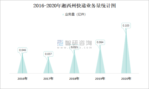 2016-2020年湘西州快遞業務量統計圖