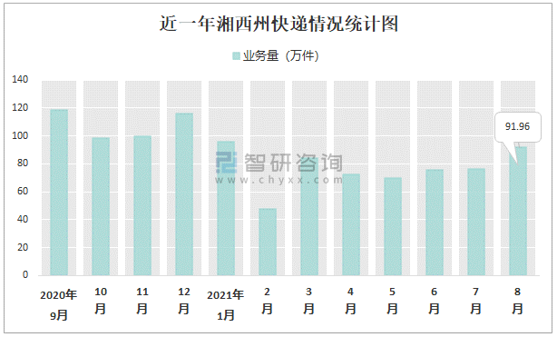 近一年湘西州快遞情況統計圖